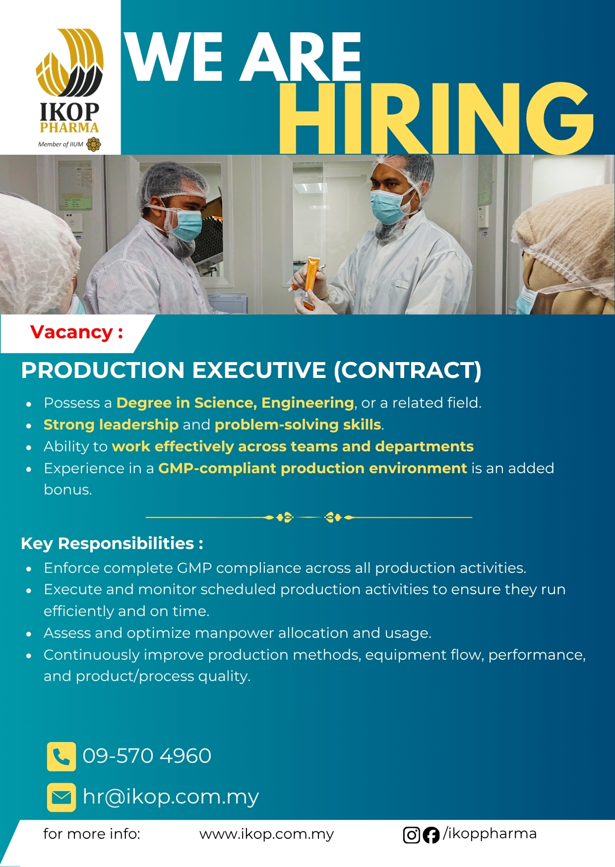Joining the IKOP Pharma team presents an exciting opportunity to be part of a pioneering Bumiputera company that excels in the pharmaceutical industry. As a subsidiary of IIUM Holdings, IKOP Pharma is not only a symbol of national pride but also a leader in innovation and quality, with a GMP-certified plant that underscores its commitment to excellence.